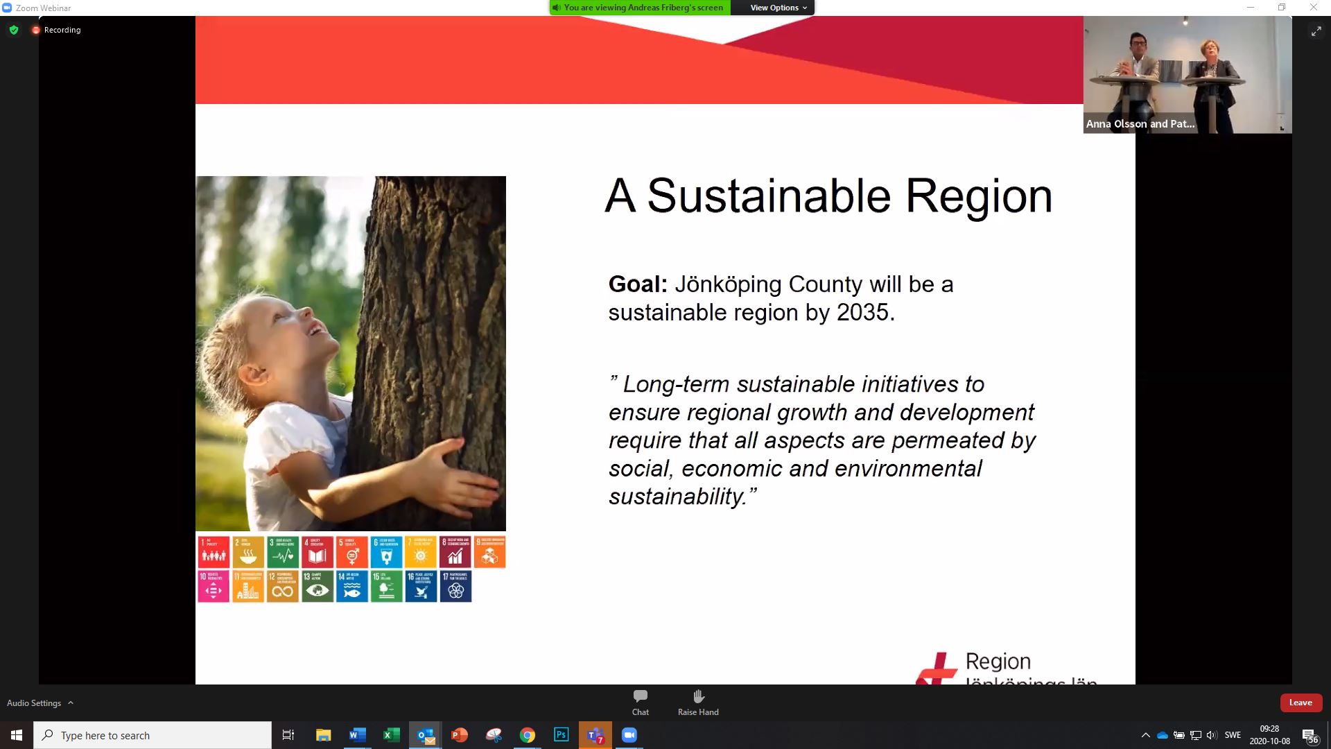 Hon var moderator för torsdagens konferens Sustainability Day, som bland annat bjöd på inslag om stadsodlingar, hälsa och välbefinnande och cirkulär ekonomi. Representanter för Region Jönköpings län pratade om sin vision att bli bäst i landet på hållbarhet och Guénola Nonet betonade att JUSN har ett regionalt fokus.