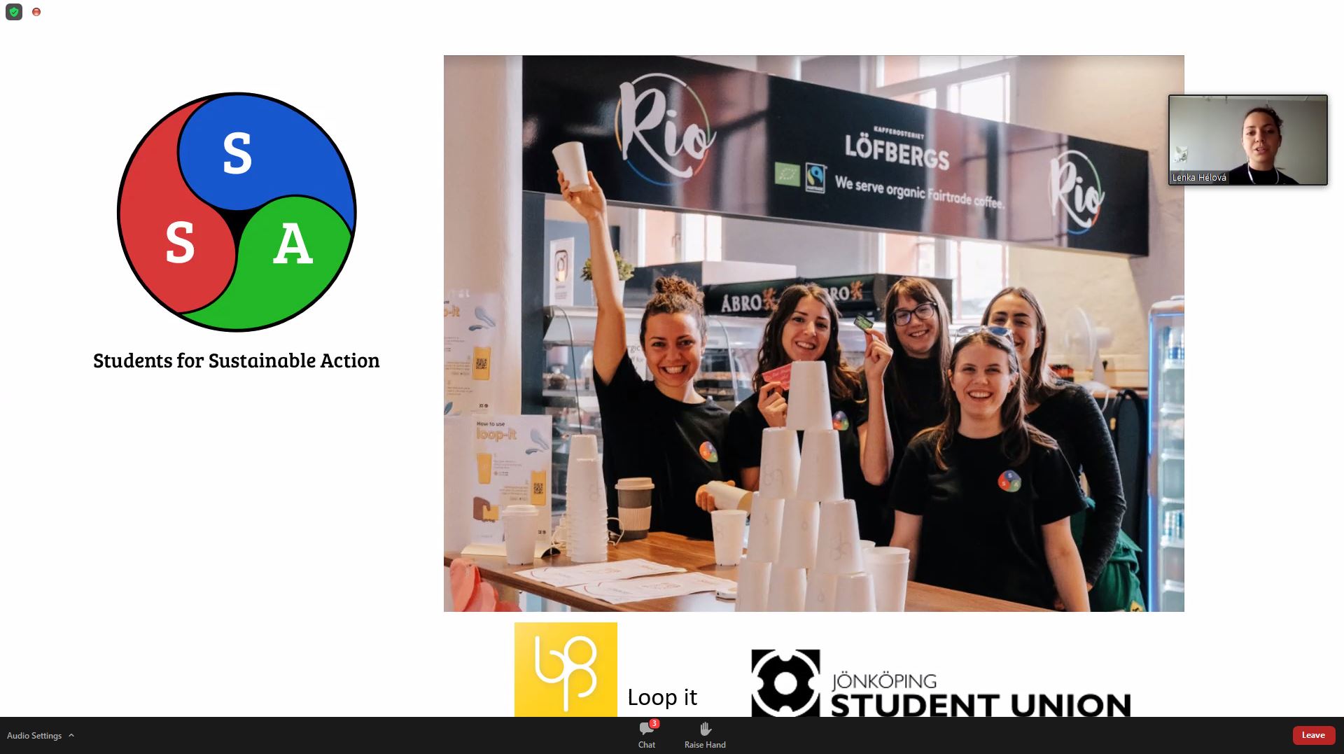 JU Sustainability Network ser stor potential i att studenter och personal på JU kan göra mer för en samhällsövergång mot en hållbar framtid. Under den sista timmen av Sustainability Day fick tre JU-studenter ge sin syn på hållbarhet i ett samtal med universitetslektor Mark Edwards. Lenka Hélová, ordförande för SSA, menar att samarbete är nyckeln till framgång för hållbarhet och att det inte finns några ursäkter till att inte välja förändring.