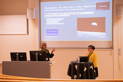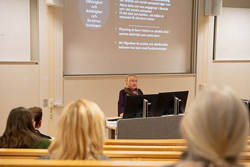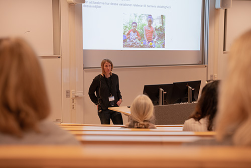 Deltagarna fick också ta del av spännande och viktig forskning där forskare från HLK deltar i. Frida Åström, som disputerade vid HLK nyligen, berättade om sin avhandling "Everyday life in preschool - Swedish and international approaches". Eva Björck, professor i specialpedagogik, presenterade ett Horizon Erasmus + projekt som hon och Lilly Augustine, forskningschef, medverkar i. Projektet, som heter I AM (inclusive assessment map), går ut på att skapa och testa en app som lärare kan använda för att fokusera snarare på delaktighetssituationer än på att kompensera för enskilda tillkortakommanden. Sangeeta Bagga-Gupta, professor i pedagogik, presentera projektet PAL: Participation for All?. PAL syftar till att generera kunskap som kan bidra till att identifiera framgångsrika kriterier för övergångar till vuxenlivet för unga vuxna.