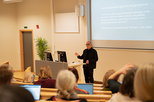 Konferensens huvudtalare var Mikael Alexandersson, professor Emeritus vid Göteborgs Universitet, som pratade om att det snart har gått 25 år sedan Lärarutbildningskommitén föreslog att ett nytt vetenskapsområde för lärarutbildning, pedagogisk yrkesverksamhet och lärande i arbetslivet – Utbildningsvetenskap – skulle inrättas och hur det sedan gick.